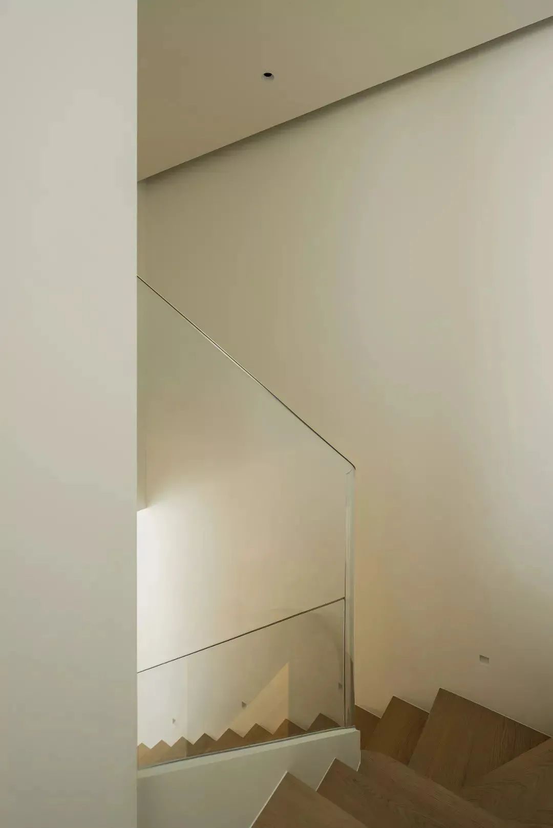 通往二楼的木质楼梯,为空间增添了灵活性,用玻璃进行区隔,美观性与实用性兼具。