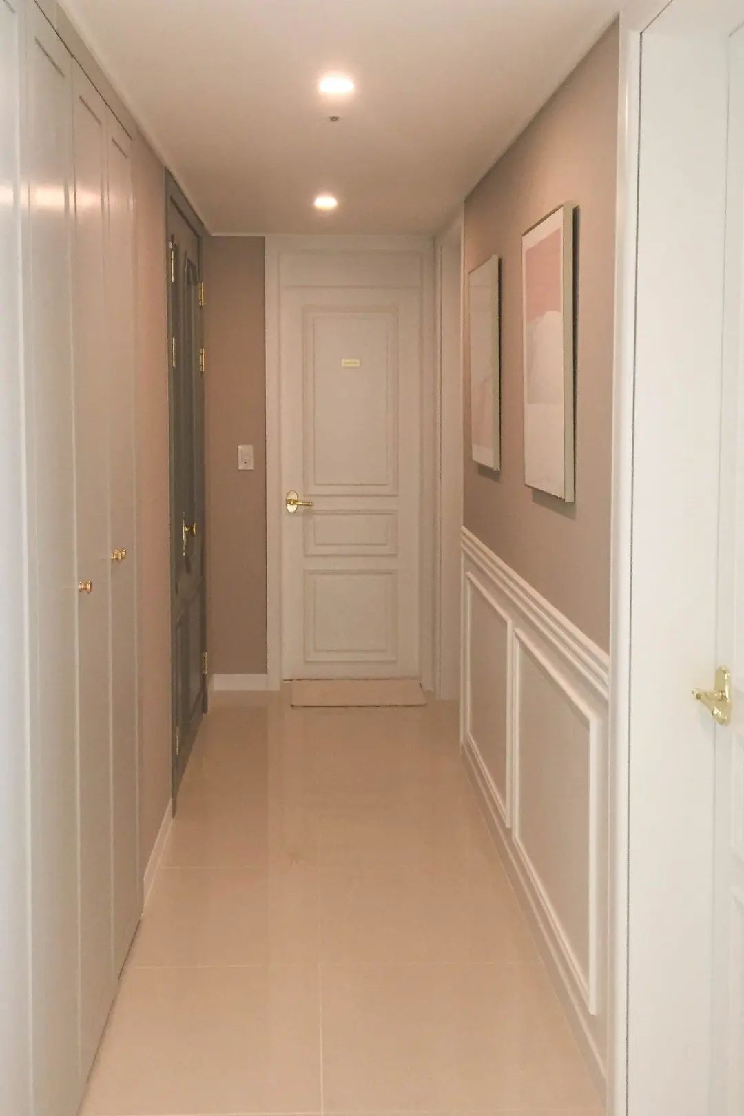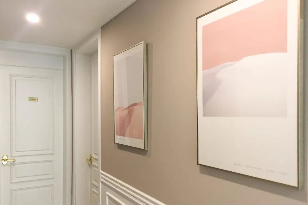 除了墙面走心的石膏线,玄关处的收纳空间更是充足,玄关柜直接做到顶,紧靠旁边的承重柱,还做了一种嵌入式隐形柜体的设计感。