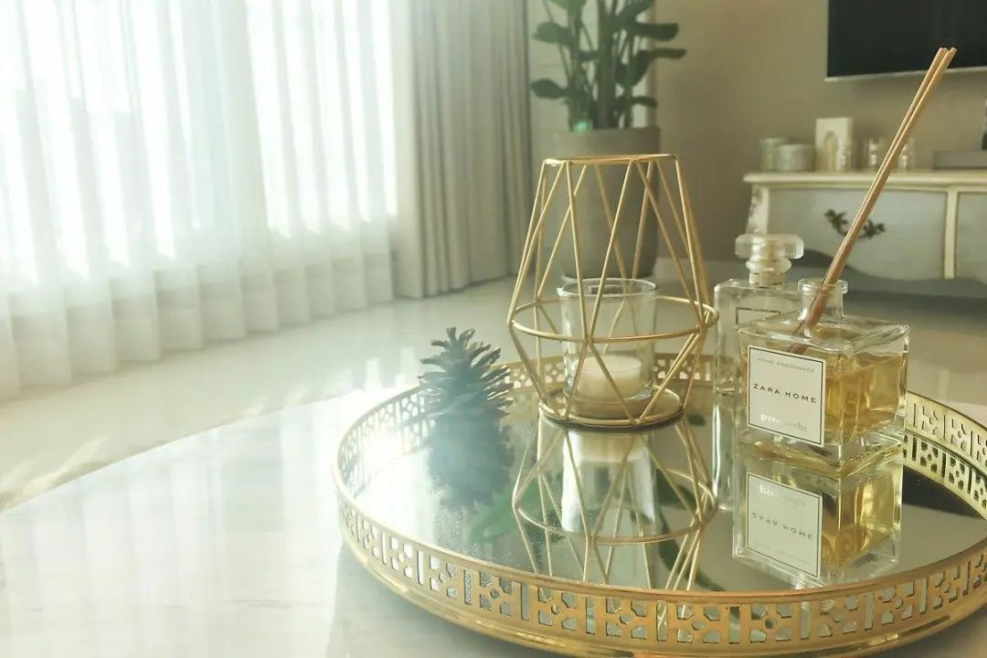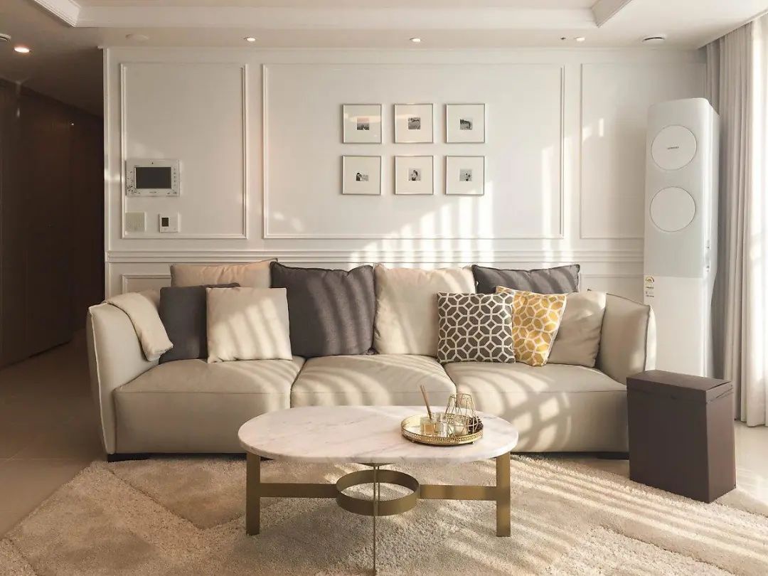 客厅开间不是很大,表哥选了是一个3位座的长沙发,侧边搭配一个小沙发凳子,家里来客也不怕坐不下大的尴尬,中间选择石材和金属材质的茶几,突出整个法式的轻奢高级。